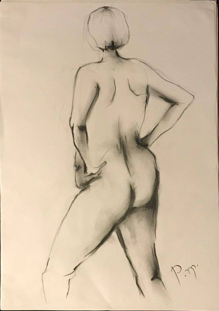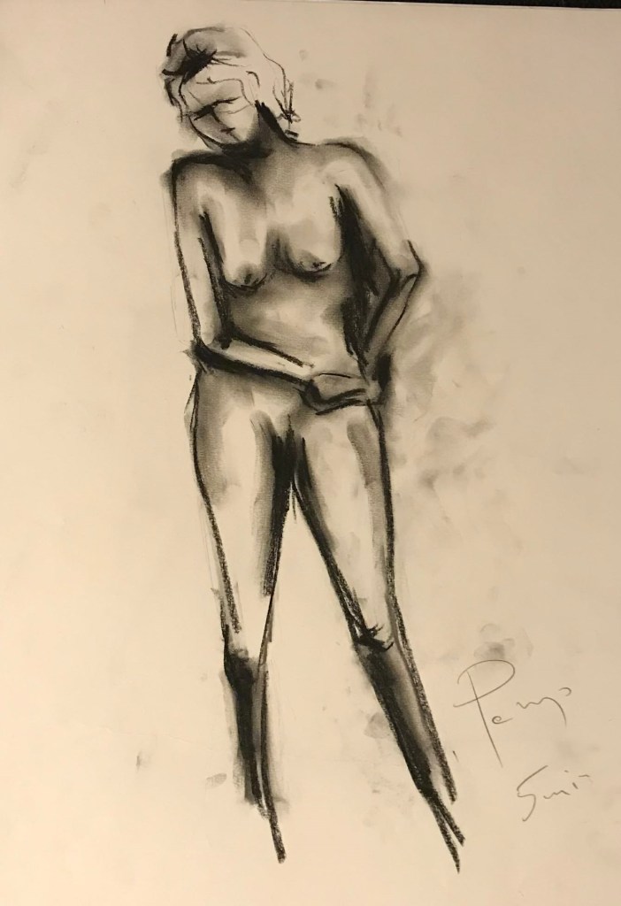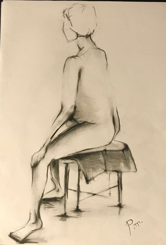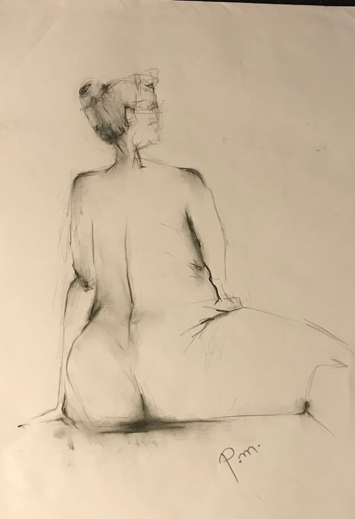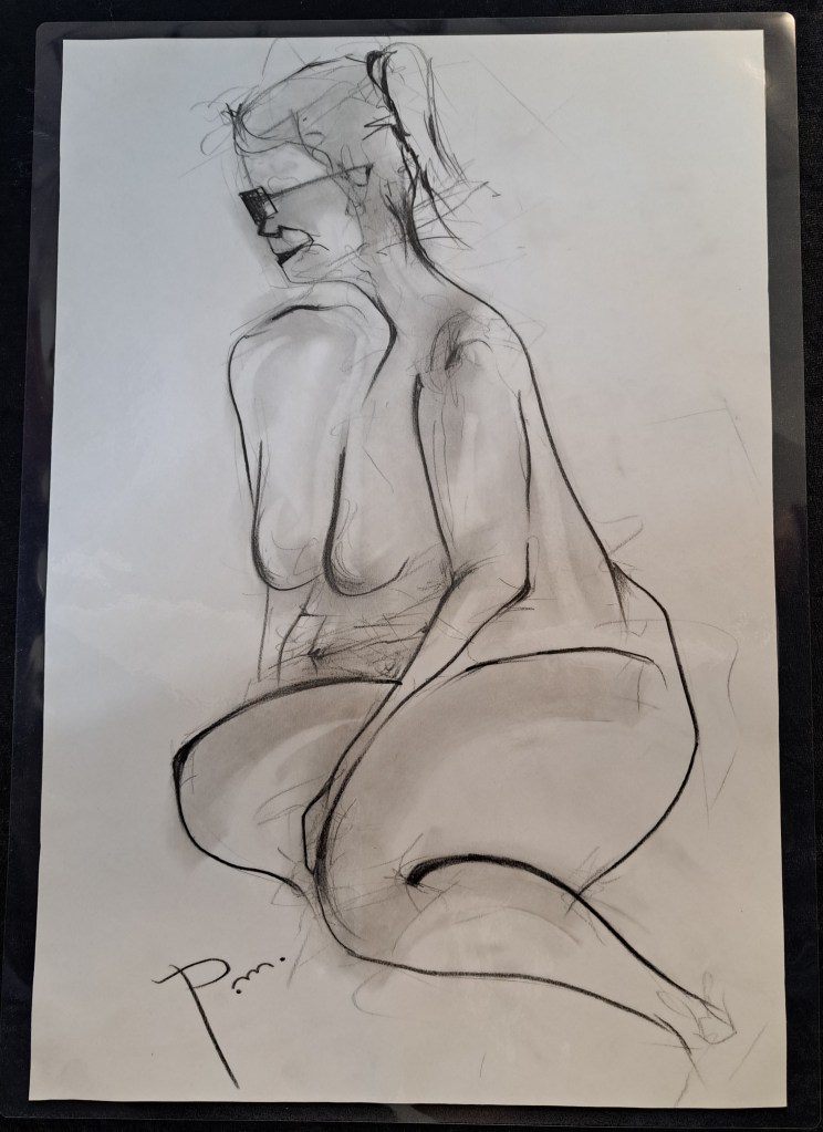 Krokitegning har vært min favoritt kunstneriske øvelse i det siste, der jeg må lage raske skisser av en levende modell. Hver positur her varer vanligvis opptil 3 minutter før modellen endrer posisjon. Du må fange kroppens form, bevegelse og proporsjoner veldig raskt, du må «føle» posituren. Ikke vær kritisk til det endelige resultatet – målet mitt er å øve på fart og bli tryggere med linjen, skjerpe observasjonsevnen og formsansen min.