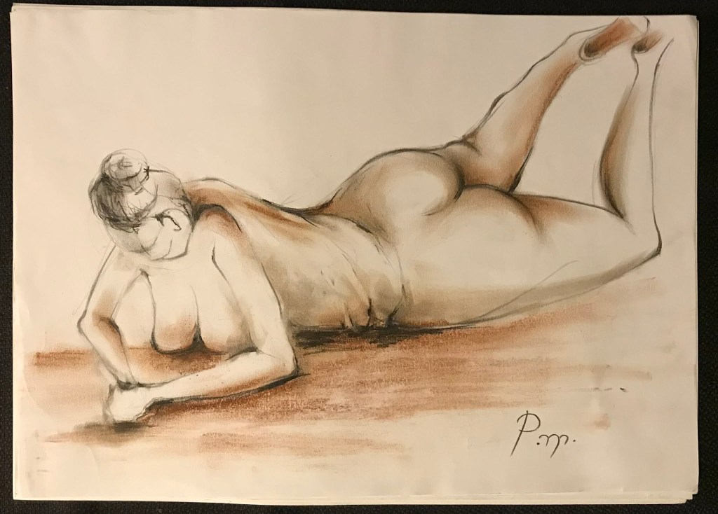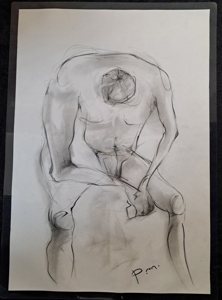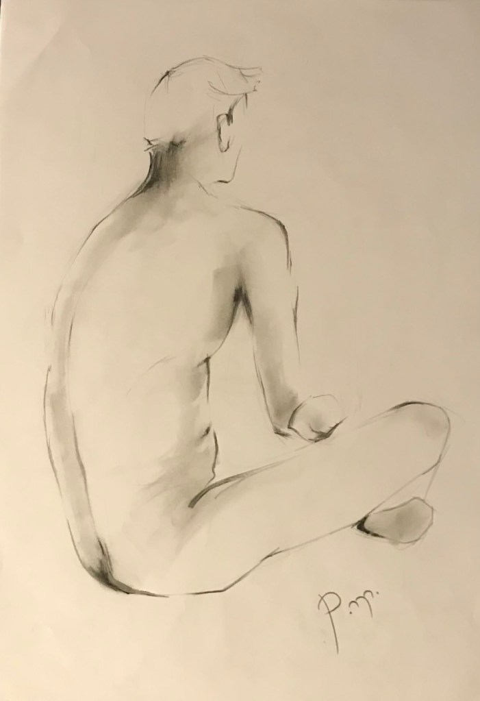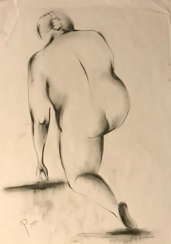Krokitegning har vært min favoritt kunstneriske øvelse i det siste, der jeg må lage raske skisser av en levende modell. Hver positur her varer vanligvis opptil 3 minutter før modellen endrer posisjon. Du må fange kroppens form, bevegelse og proporsjoner veldig raskt, du må «føle» posituren. Ikke vær kritisk til det endelige resultatet – målet mitt er å øve på fart og bli tryggere med linjen, skjerpe observasjonsevnen og formsansen min.
