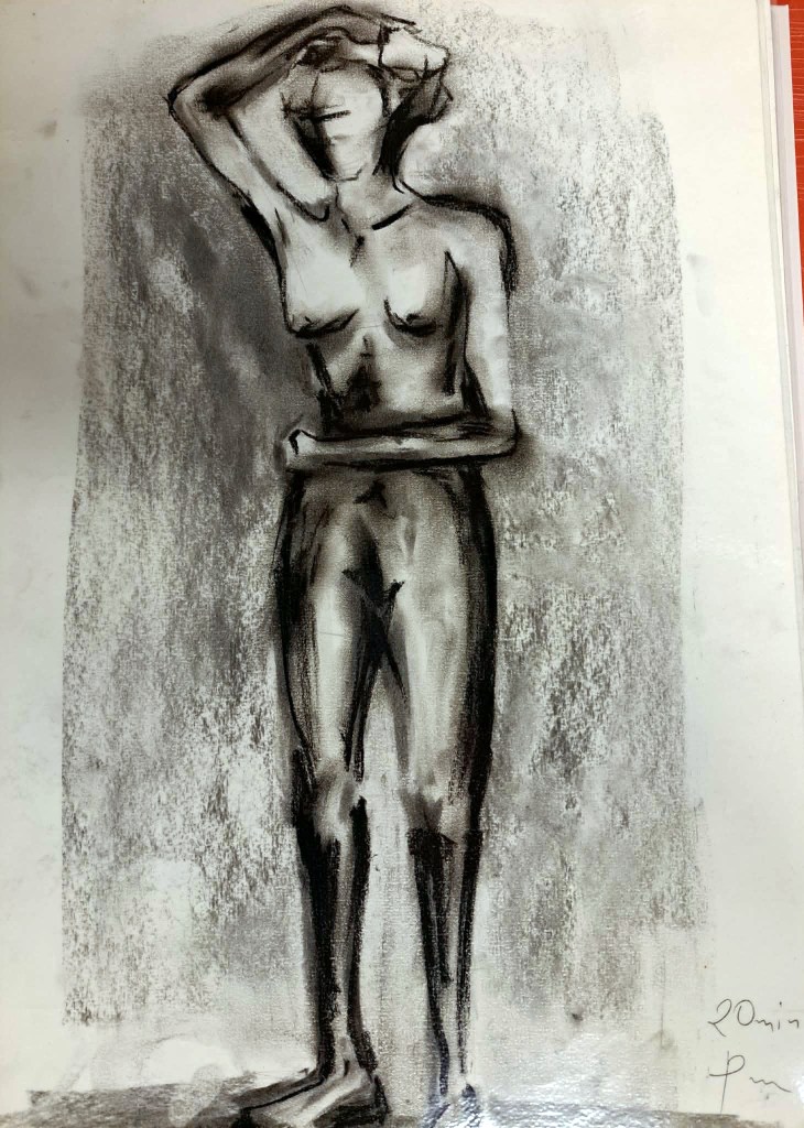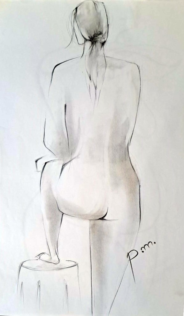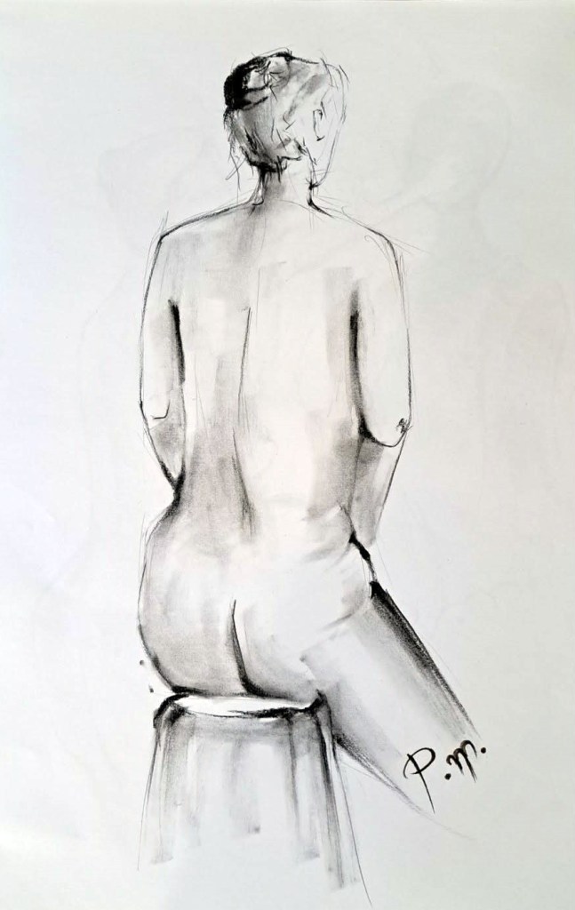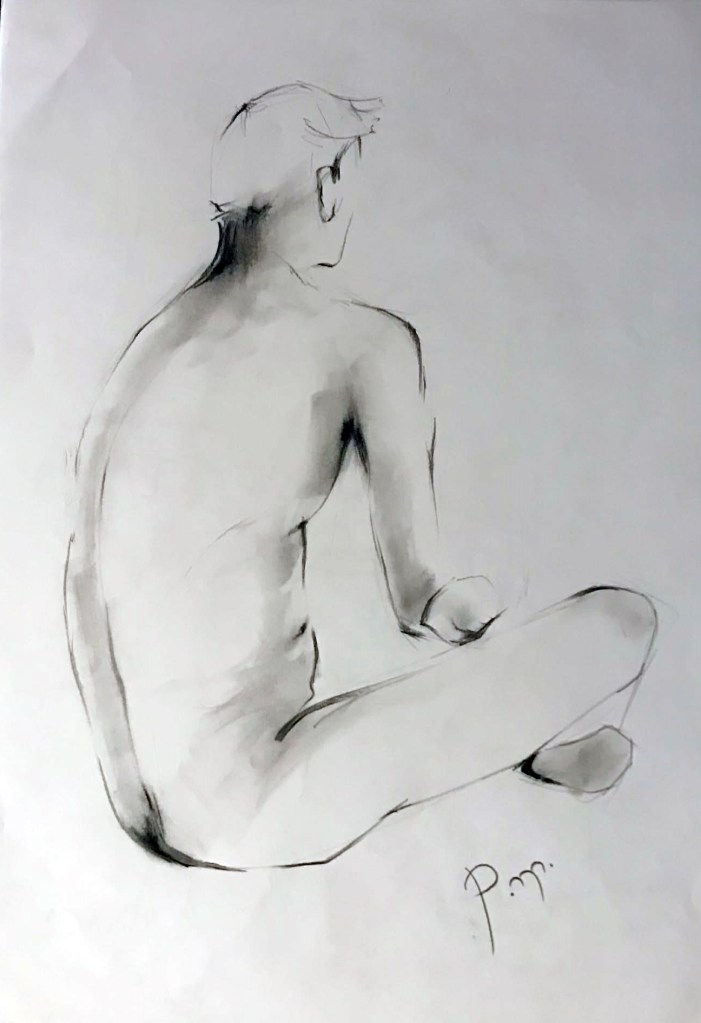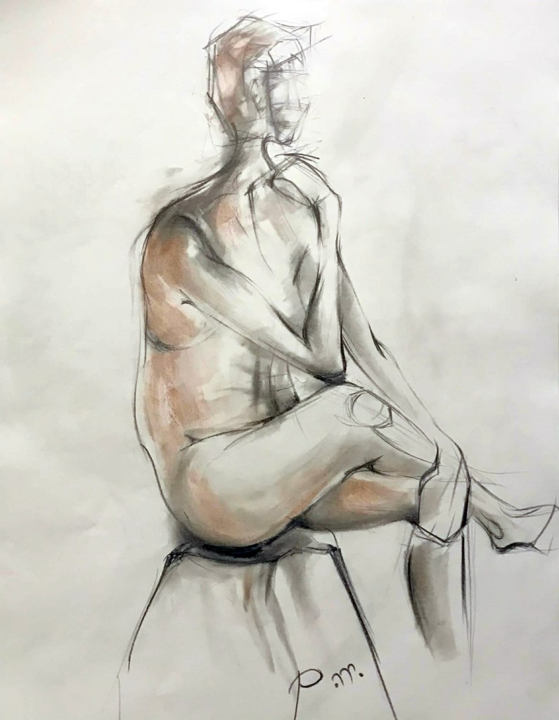 Krokitegning har vært min favoritt kunstneriske øvelse i det siste, der jeg må lage raske skisser av en levende modell. Hver positur her varer vanligvis opptil 3 minutter før modellen endrer posisjon. Du må fange kroppens form, bevegelse og proporsjoner veldig raskt, du må «føle» posituren. Ikke vær kritisk til det endelige resultatet – målet mitt er å øve på fart og bli tryggere med linjen, skjerpe observasjonsevnen og formsansen min.