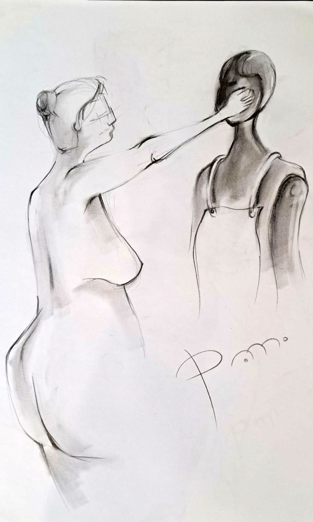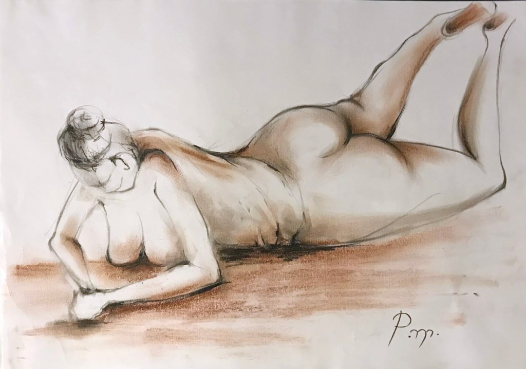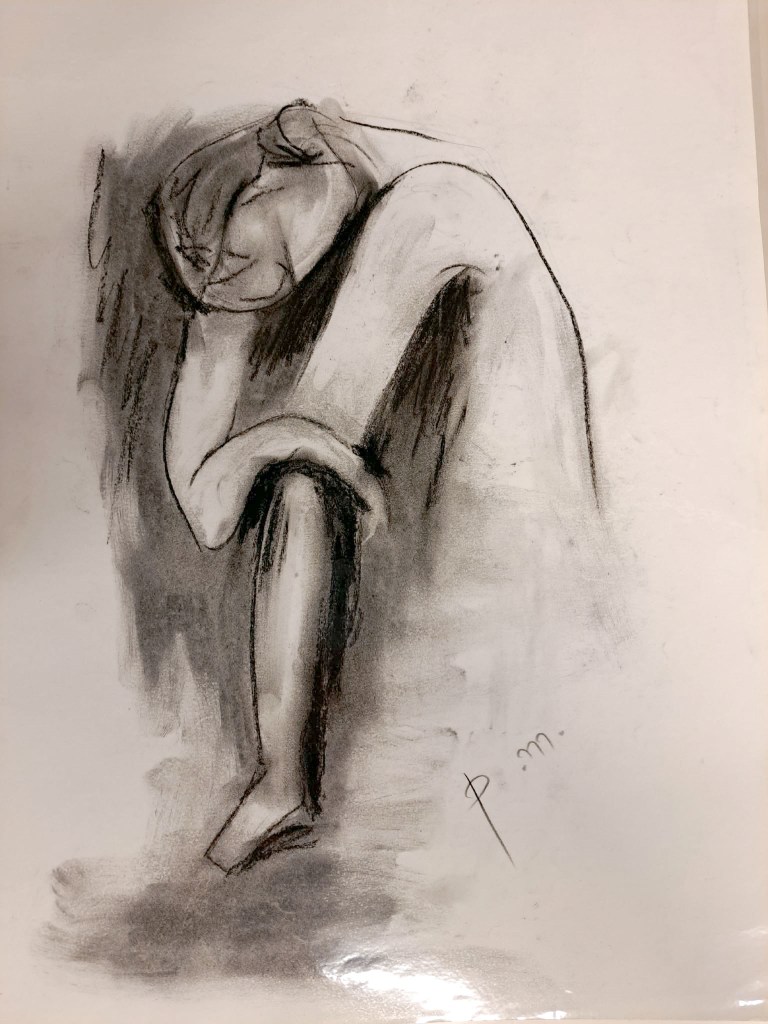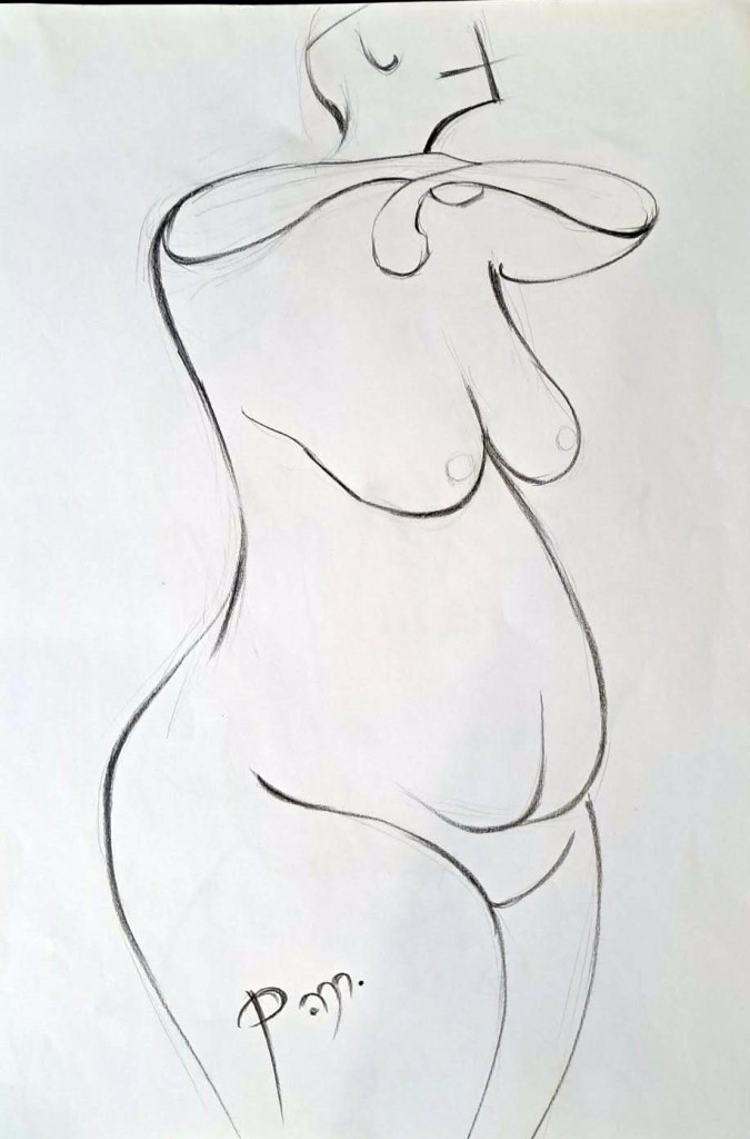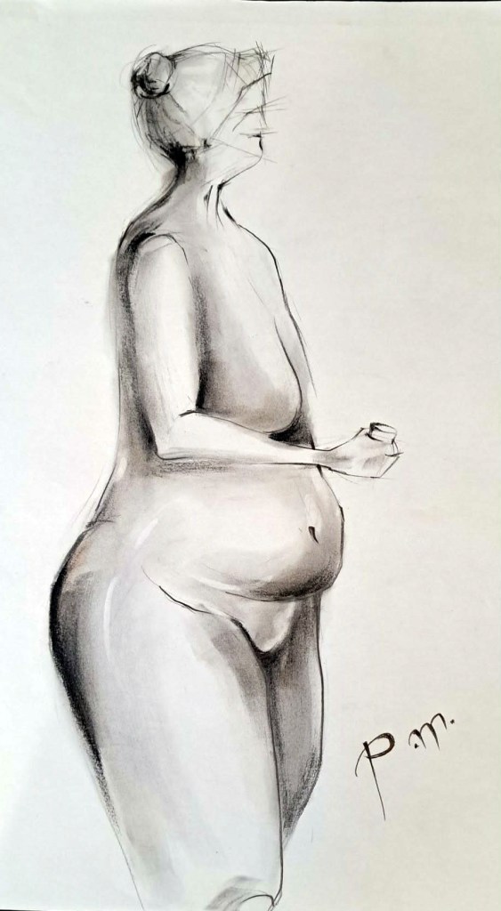 Krokitegning har vært min favoritt kunstneriske øvelse i det siste, der jeg må lage raske skisser av en levende modell. Hver positur her varer vanligvis opptil 3 minutter før modellen endrer posisjon. Du må fange kroppens form, bevegelse og proporsjoner veldig raskt, du må «føle» posituren. Ikke vær kritisk til det endelige resultatet – målet mitt er å øve på fart og bli tryggere med linjen, skjerpe observasjonsevnen og formsansen min.